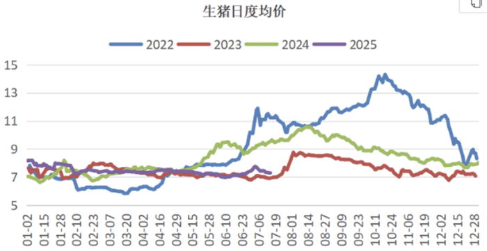 生猪需求存在较为稳定的季节性,受春节影响四季度至次年年初往往是消费旺季,而目前处于消费淡季。目前猪产业链下游屠宰开工率略强于往年同期,但差距不大。我们预期短期内猪肉消费难有走强的支撑因素。当前处于夏季消费淡季,学校放假、户外作业减少等因素,使得团膳等集中消费需求下降,季节性因素进一步抑制了生猪需求的回暖。此外,6月份社零显示餐饮需求仍然减弱,终端也部分切换至冻肉库存,消费韧性不足。