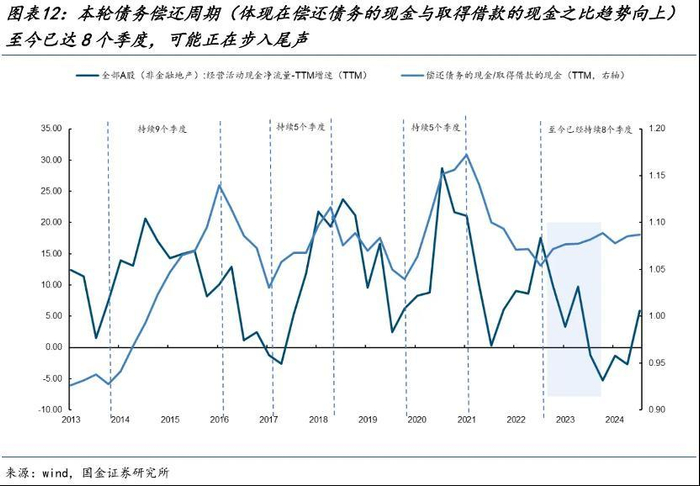 与之对应的,国金证券在微观层面也发现了企业的偿债压力减轻,本轮债务偿还周期可能正在步入尾声。