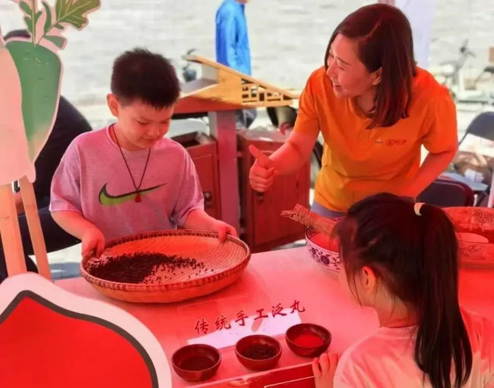 在非遗活化的时代命题下,津药达仁堂集团以深厚底蕴为基,创新表达为翼,走出了一条传统中医药文化传承与焕新的特色之路。津药达仁堂集团将文化传承目光投向青少年群体。在天津市“博物知津”青少年博物馆藏品讲述大赛中,其馆藏珍品——长达3.06米的“达仁堂长算盘”成为文化载体,吸引近2000名小选手深情讲述其背后“顾客至上”的经营智慧与近代工业化创新缩影。津药达仁堂集团更携“文物故事进校园”,第四代传人翁悦走进天津师范大学北辰实验学校,带领孩子们辨识药材、亲手制作中药香囊,让中医药文化的种子在童趣体验中悄然生根。