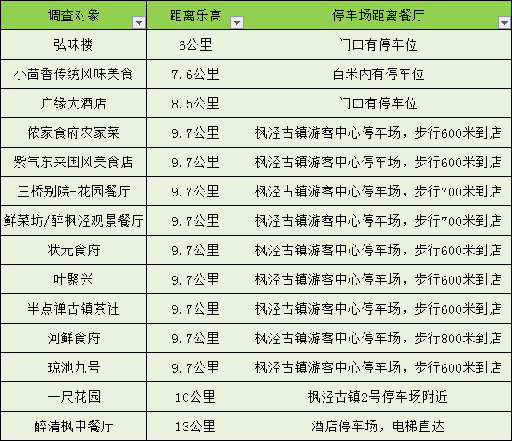 交通配套:这些餐饮企业距离乐园10公里内,公共交通直达线路较少,推荐自驾前往,交通不拥堵情况下,25分钟车程内即可到达,且地图导航路线清晰。除枫泾古镇内的餐饮企业需停车至古镇停车场后步行进入外,其余均可开车直达餐馆附近。