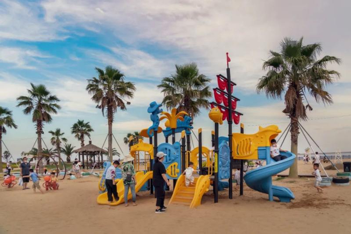 漫步金山城市沙滩,踏浪逐沙,沉浸于浪漫的滨海风情。