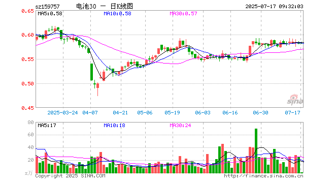 电池30ETF(159757)开盘涨0.00%,重仓股比亚迪涨0.40%,宁德时代涨0.37%