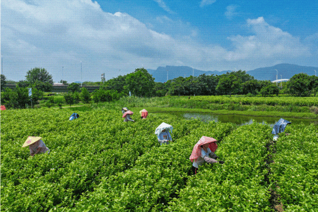 茉莉花是福州市花,洁白馥郁,喜高温、光照,每年采收期为5月至10月。