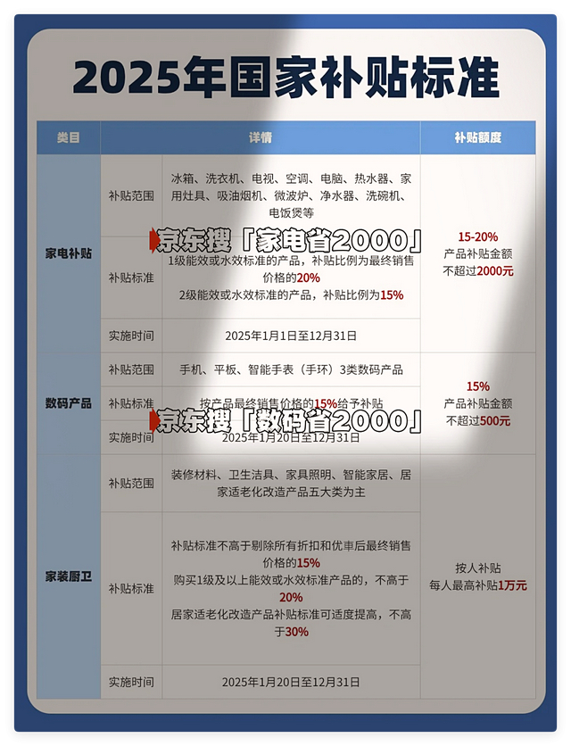 首先,划重点!家电家居国补资格的领取方法入口是:京东APP搜「家电省2000」国补直接立减2000元,手机数码国补的领取方法入口是:京东APP搜「手机省500」或「数码省2000」领2000元补贴资格。