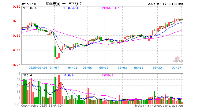 500ETF增强(159610)涨0.55%,半日成交额166.79万元