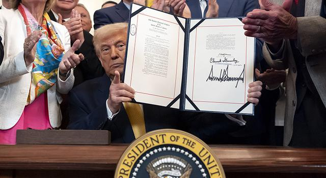 当地时间7月16日,白宫东厅,美国总统特朗普签署“全面遏制芬太尼贩运法案”。 视觉中国