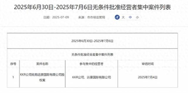 曾几何时,大窑创始人王庆东那番“绝不卖外资”的宣言还掷地有声,为这个从内蒙古崛起的汽水品牌镀上了一层“民族之光”的色彩。然而,日前重庆市市场监督管理局官网显示,在《2025年6月30日-2025年7月6日无条件批准经营者集中案件列表》中,KKR公司收购远景国际有限公司股权案在列,后者通过其关联公司在中国境内主要从事饮料业务,与大窑相吻合,该案审结时间为2025年7月4日。