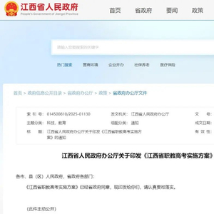 江西省人民政府办公厅关于印发《江西省职教高考实施方案》的通知