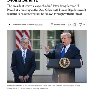 △《纽约时报》发文称,特朗普已经起草解雇美联储主席鲍威尔的信件。