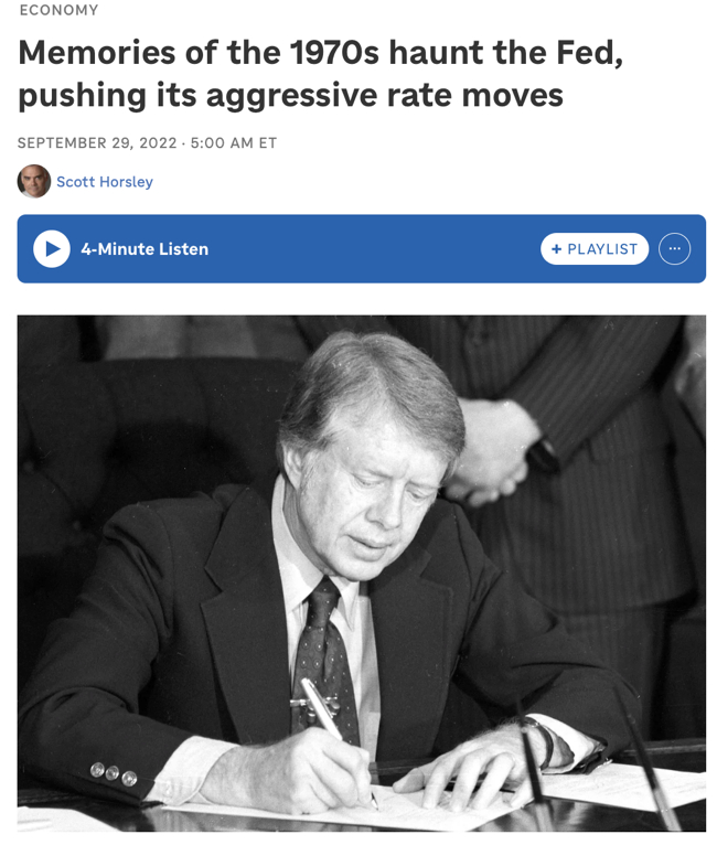 △美国全国公共广播电台(NPR)报道称,前总统卡特时期,正是由于美联储主席沃尔克加息,才打破了物价上涨的恶性循环,这被认为是美国结束滞涨、恢复经济稳定的关键。