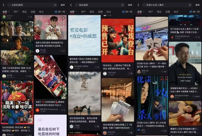 《长安的荔枝》《戏台》《花漾少女杀人事件》等几部待映新片同样在点映期间于小红书收获了大量真实影评,在前期口碑发酵阶段奠定下重要基础。若片方能够善加捕捉引导,势必能够在后续正式公映阶段的口碑传播中发挥更大作用。