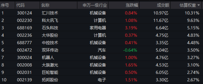 【机器人ETF基金(159213)标的指数前十大成分股】