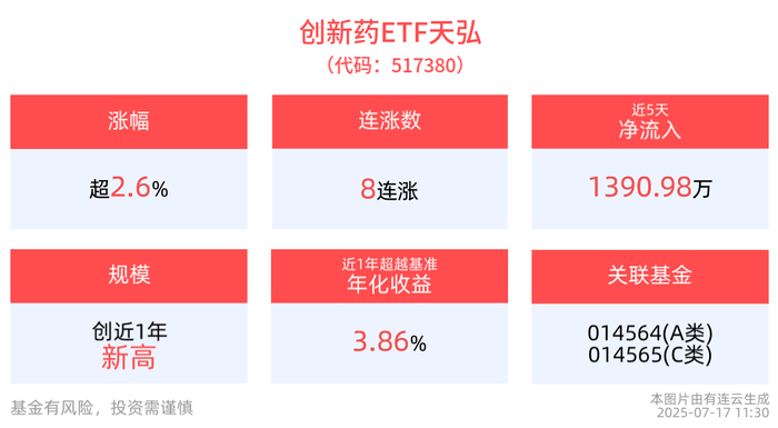 冲击8连涨!全市场孤品——创新药ETF天弘(517380)拉升涨超2.6%,最新规模创新高!创新药研发加速突围,新药出海进入“收获窗口”