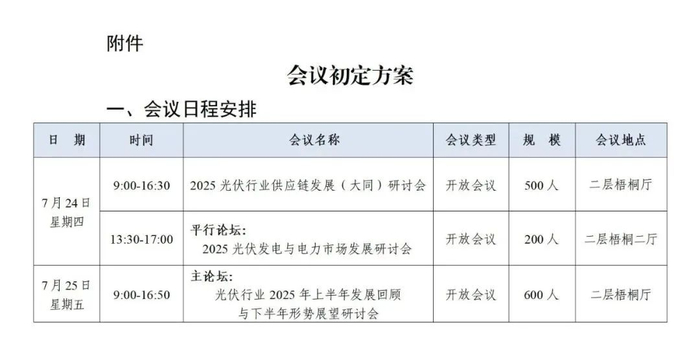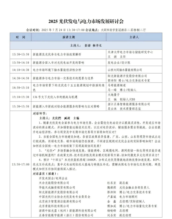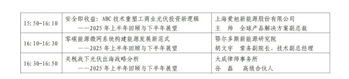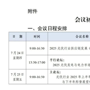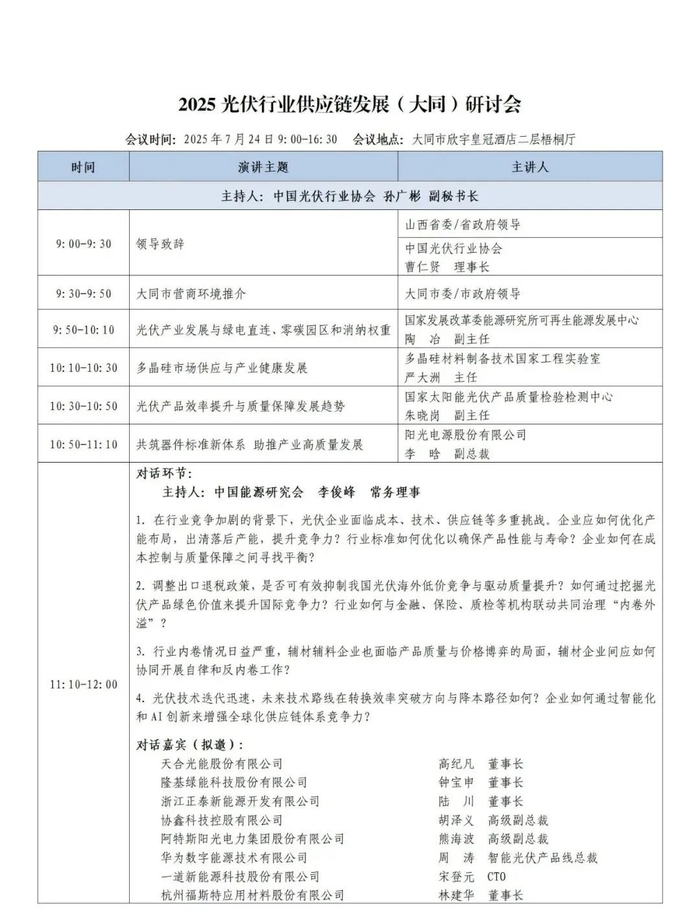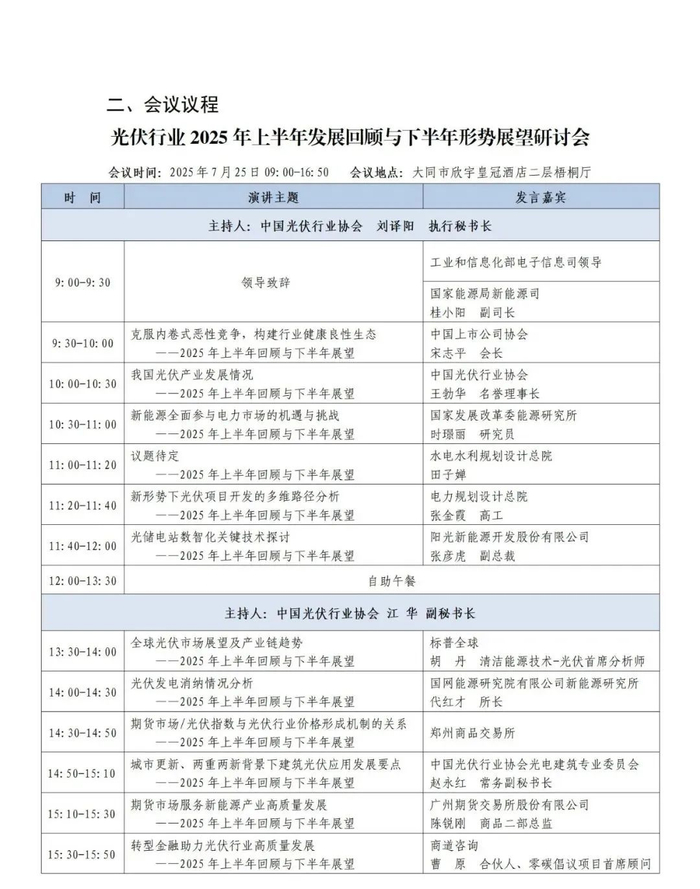 光伏行业2025年上半年发展回顾与下半年形势展望研讨会最新议程