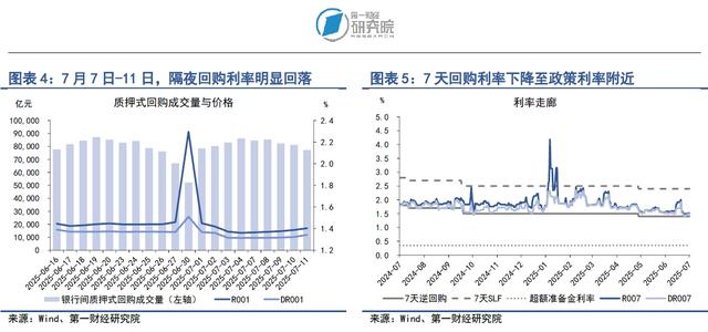 银行与非银之间的流动性差异明显下降。在7月7日至11日当周,R007与DR007之间的平均差值从6.22BP下降至3.33BP。通常而言,当R007与DR007的差值在10BP以下时,我们认为银行与非银之间的流动性差异不显著。