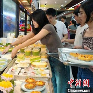 7月12日,参加2025年海南自贸港“逐浪计划”港澳大学生暑期实习活动的大学生在海口品尝“老爸茶”。王海荣 摄