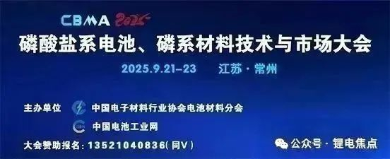 中国电子材料行业协会电池材料分会将在2025年9月21-23日江苏常州(或苏州)举办“2025磷酸盐系电池、磷系材料技术与市场大会暨超快充用负极材料技术创新论坛”,信息如下: