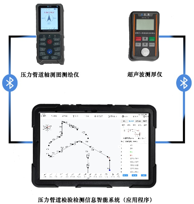 该智能系统是广东省市场监管局科技项目《基于组合导航技术的管道轴测图测绘方法研究及检验过程数字化管理系统开发》的科研成果,由压力管道轴测图测绘仪与手持式智能终端设备组成,集成压力管道检验检测的自动测绘、数据采集、智能分析和文档生成等多项功能,实现了从传统人工记录向数字化、智能化操作的跨越。检验人员可通过交互式程序在现场高效完成压力管道轴测图的快速绘制与检验数据录入,系统自动生成标准化报告文档,大幅减少工作量,提升检验效率与质量。系统首创的轴测图自动测绘技术填补国内相关技术空白,经行业专家鉴定达到国内领先水平,对提高压力管道检测的科技化、标准化具有重要意义。