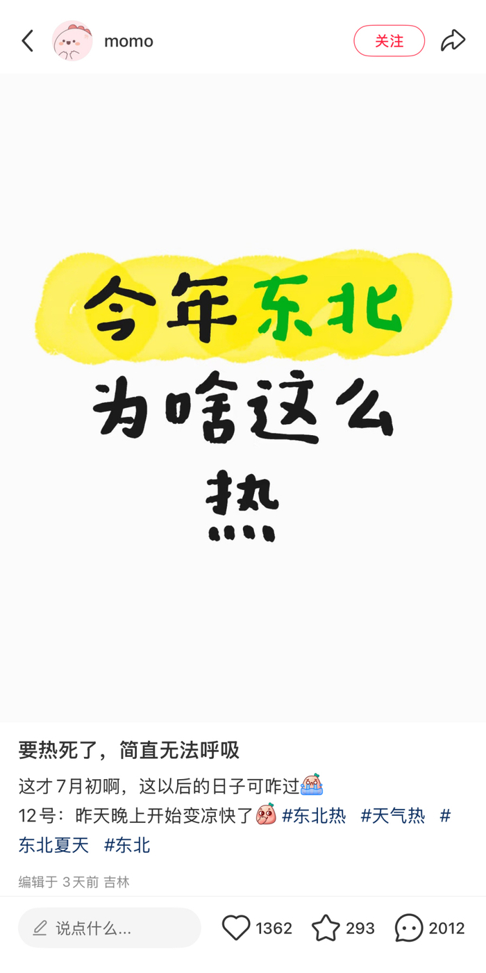 社交平台上,东北的网友们发布“灵魂拷问”:“今年东北为啥这么热?”