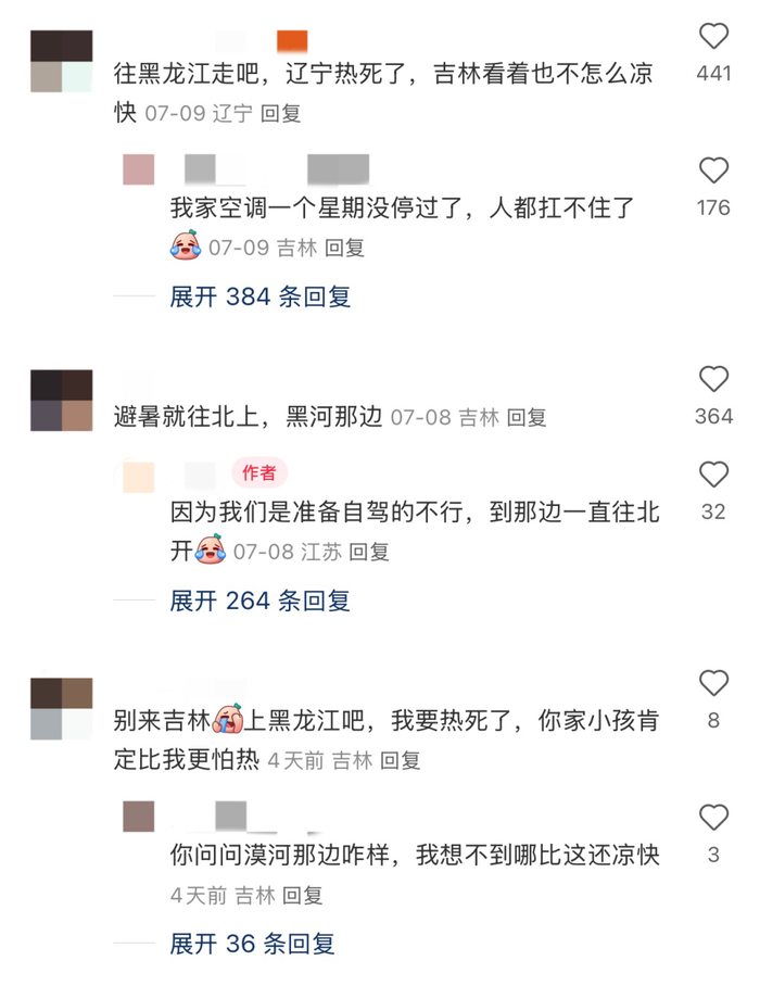 有网友求助称:“急需问下东北吉林或者黑龙江到底热不热,准备带一岁多宝宝去避暑……”笔记下多个IP在东北地区的网友纷纷留言表示“往黑龙江走吧,辽宁热死了……”“别来吉林,上黑龙江了,我要热死了……”