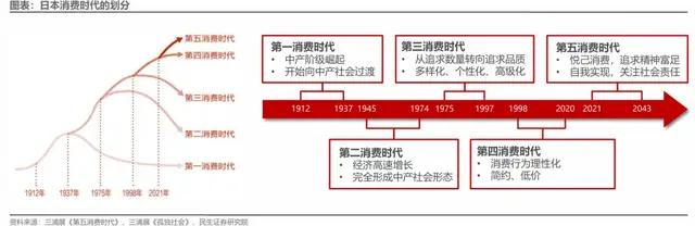 学者三浦展根据日本近代社会的消费变化,将消费划分为五个时代,总结了从追求物质的时代到回归精神精神、从依赖集体到聚焦个体的消费变革。第五消费时代的根本特征,是消费的核心追求不再是单纯的物质拥有,而是转向实现“悦己消费”与“自我实现”,消费者更加注重精神的富足。