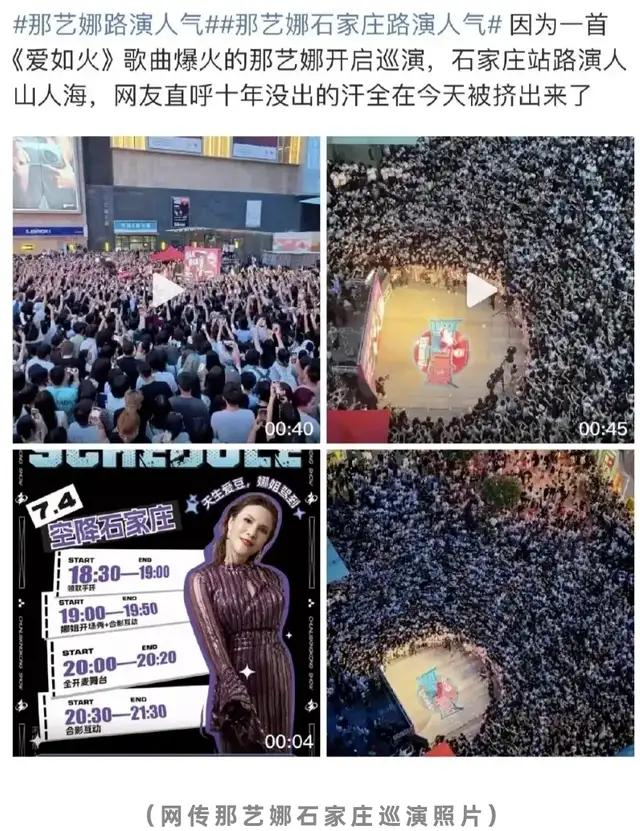 然而根据全国巡演的情况来看,基本上每一场的氛围都十分热烈。现场观众齐声大喊“退票”作为应援,只要那艺娜开始唱爱如火,全场又齐声合唱,整个衔接过程丝滑且毫无违和。并且主要有巡演现场的视频,在短视频平台上基本上都能有不错的播放量和互动。