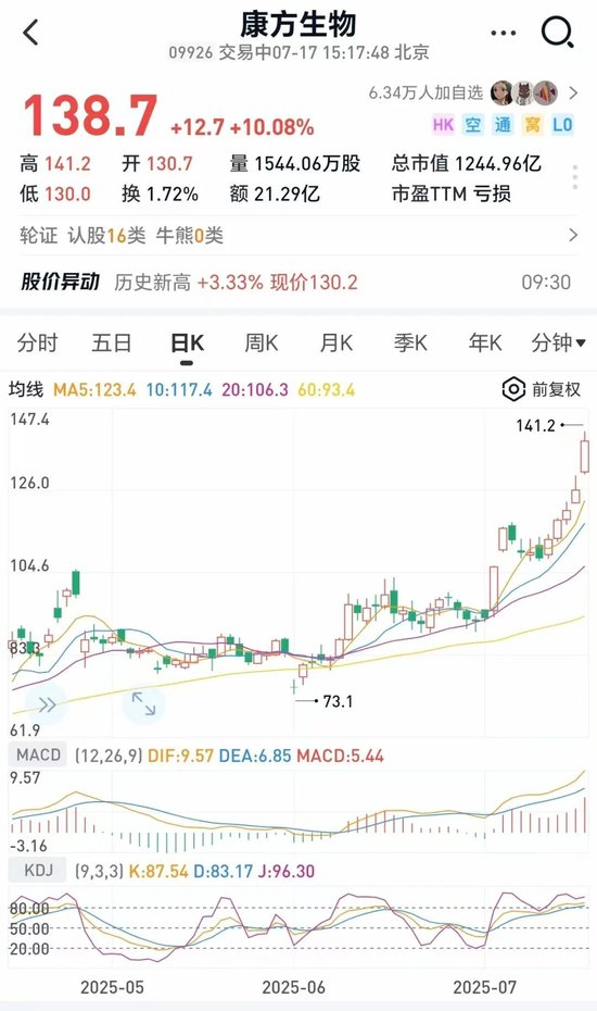 港股百济神州大涨超10%,康方生物大涨10%,市值超1200亿港元,创历史新高,三生制药也大涨9%。