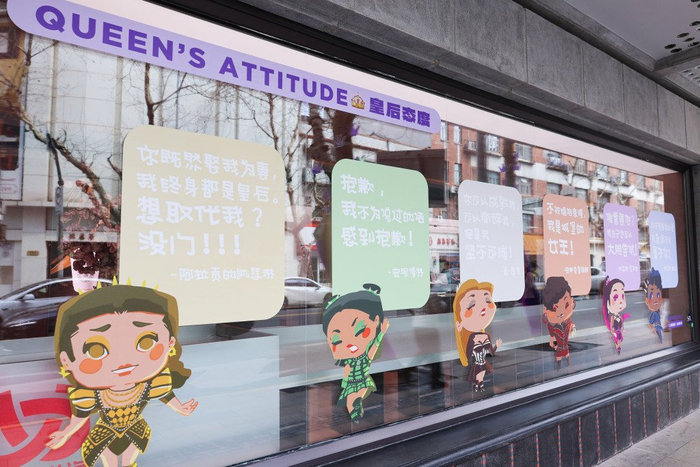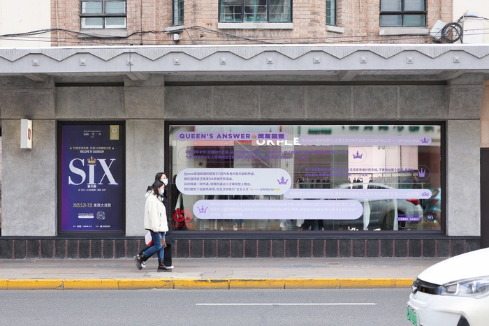 今年3月8日国际妇女节期间,《SIX》与淮海路商圈的LADY淮海、TX淮海两大商场合作,打造“皇后巡游地图”,通过限时展陈、互动装置、到店福利等形式,将剧目精神引入“她空间”,以“她力量”助力“她经济”。
