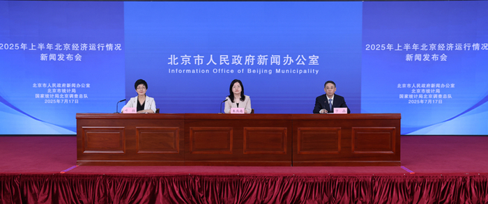▲7月17日,北京市人民政府新闻办公室举行2025年上半年北京经济运行情况新闻发布会。市统计局、国家统计局北京调查总队相关负责同志介绍情况并回答记者提问。北京市委宣传部对外新闻处处长叶昶主持。