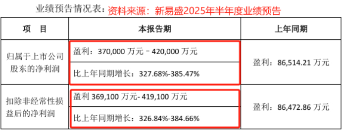 7月15日,新易盛发布业绩预告,2025年上半年公司预计实现净利润37亿元到42亿元,同比大增327.68%到385.47%。