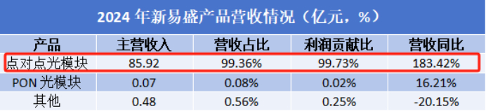 2024年公司点对点光模块实现营收85.92亿元,占总营收的比重高达99.36%,利润贡献比更是达到99.73%,是公司绝对的核心利润来源。