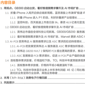 AI-PCB受英伟达AI服务器需求以及ASIC需求的拉动持续增长:云服务大厂对AI推理侧需求的资本支出依旧见涨,尤其是对PCB的需求出现明显增长。AI-PCB有两个增量方向:一是受到英伟达AI服务器需求的拉动,二是受到ASIC需求的拉动。1)英伟达GB200 NVL7 2架构对PCB提出更高的要求,推动PCB增长。2)ASIC发展推动PCB需求增长,促进AI PCB产业产值的快速增长。3)国内HDI方面,胜宏、沪电以及生益电子建议关注。