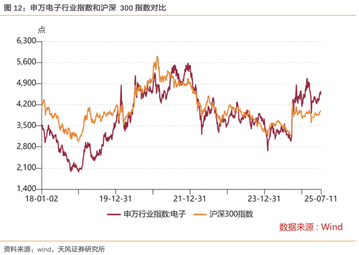 7月11日申万电子行业指数为4,620.38,本周(7/7~7/11)涨幅为0.93%,7月11日沪深300指数为4,014.81,本周(7/7~7/11)涨幅为0.82%,电子行业跑赢大盘。7月11日申万电子行业市盈率为53.20,7月11日沪深300市盈率为14.42。