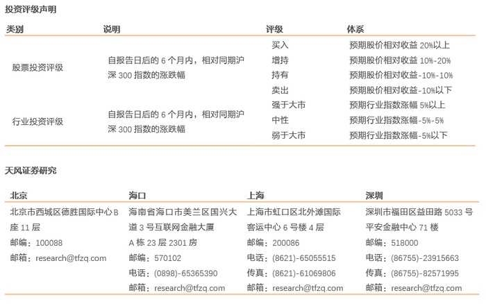 本报告是机密的,仅供我们的客户使用,天风证券不因收件人收到本报告而视其为天风证券的客户。本报告中的信息均来源于我们认为可靠的已公开资料,但天风证券对这些信息的准确性及完整性不作任何保证。本报告中的信息、意见等均仅供客户参考,不构成所述证券买卖的出价或征价邀请或要约。该等信息、意见并未考虑到获取本报告人员的具体投资目的、财务状况以及特定需求,在任何时候均不构成对任何人的个人推荐。客户应当对本报告中的信息和意见进行独立评估,并应同时考量各自的投资目的、财务状况和特定需求,必要时就法律、商业、财务、税收等方面咨询专家的意见。对依据或者使用本报告所造成的一切后果,天风证券及/或其关联人员均不承担任何法律责任。