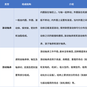 根据工作的摩擦性质,轴承一般可分为滚动摩擦轴承(简称“滚动轴承”)、滑动摩擦轴承(简称“滑动轴承”)两大类。