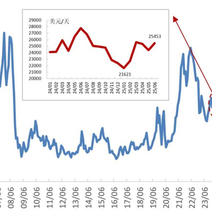 年初以来,国际航运市场整体费率呈反弹上涨趋势,但半年均值同比、环比均出现下滑。克拉克森海运指数从1月的21621美元/天上涨至6月的25453美元/天,涨幅达17.7%;但上半年均值为24191美元/天,同比、环比分别下滑4.9%、1.1%,整体市场仍呈震荡态势。全球经济复苏乏力直接抑制了航运需求预期,展望下半年,美国4月宣布的对中国以外的国家设定为期90天的10%关税基准期即将到期,美国反复无常的关税政策将更深远地影响全球航运市场,促使全球贸易格局和供应链深度重构。