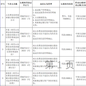 山东曹县农商行被罚超70万元,四名责任人均被罚1.5万元