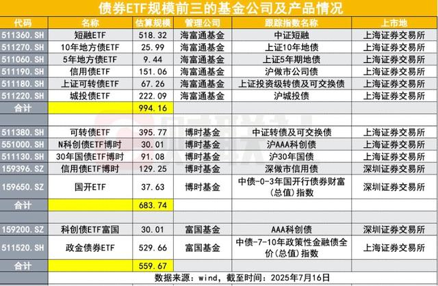 39只债券ETF规模即将突破4500亿元,海富通领跑