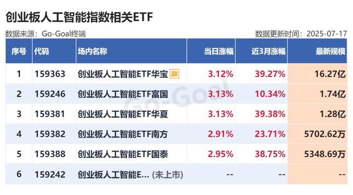 相关ETF:同类规模最大,创业板人工智能ETF华宝(159363)