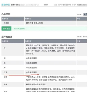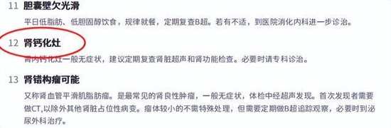 张晓玲2023年在爱康国宾的体检报告,显示肾钙化灶,未提示患癌风险,且医生告诉她不用处理