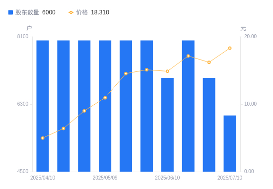 近一年(2024年7月10日至2025年7月10日),*ST宇顺A股股东户数从8000户,减低至6000户,降幅25.00%,区间股价上涨590.94%。