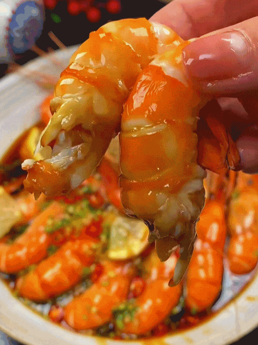再将虾浸泡在料汁中足足15个小时,才成就这道美味。