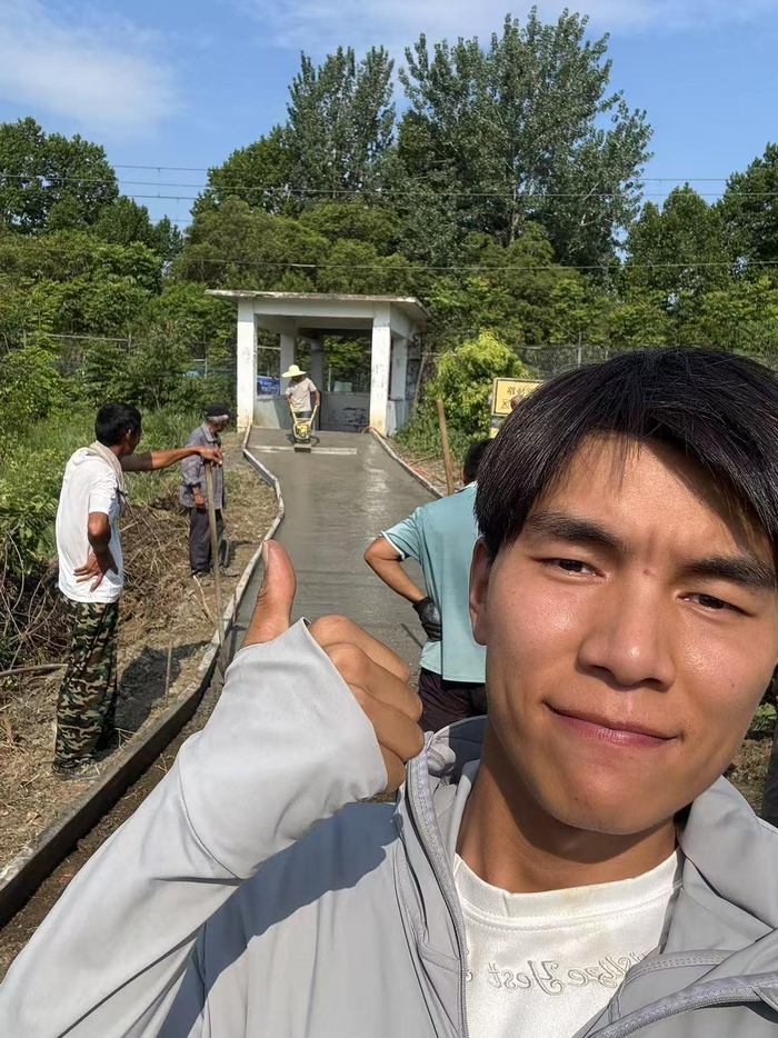 抗模板、给路基浇水、浇灌混凝土……修路的几天正热,但谁都没吝啬一身的力气。路西的小路很短,只有30多米,很快就灌好了。东边的路长,但架不住人多、心齐。修路虽然是殷徐掏钱,但每个村民都贡献了力量,“没在家的人听说要修路了,就给家人转钱,让给乡亲们买水买饮料买西瓜。”