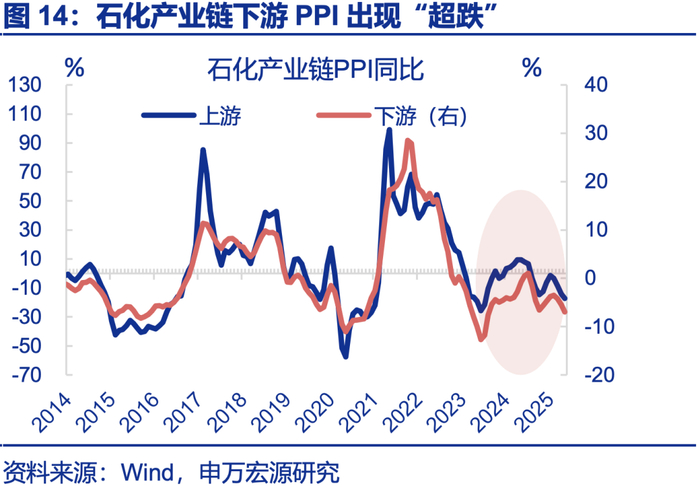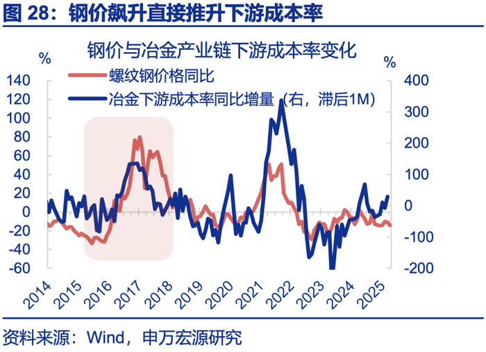 应避免中上游供给过度收缩导致价格“超涨”,约束“反内卷”政策效果,化工行业已在保供稳价。供给侧改革时,上游价格大幅上升、改善企业盈利,但下游利润明显走弱。本轮内卷的是中下游,投资增加已令刚性成本上升。上游价格大涨将加剧下游成本压力;据测算,若金属价格上涨10%,将利空下游利润增速1.9个百分点;钾肥等化工行业近期出现价格异常上涨问题,政策已在部署“保供稳价”。