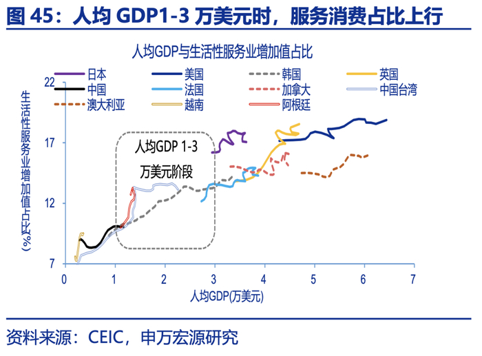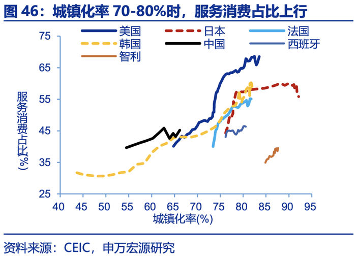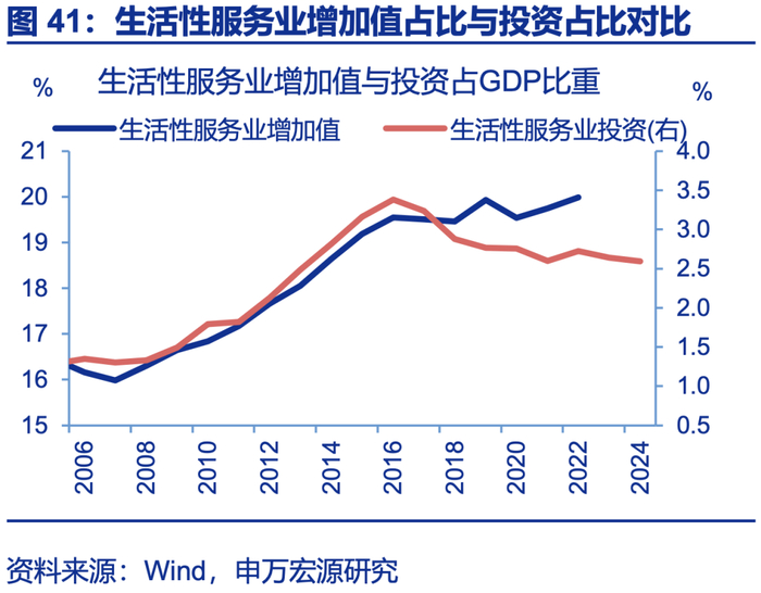 “反内卷”是持久战,促进供给结构适配需求结构长期转型方向,能从根本上解决内卷问题。全球经验显示,人均GDP在1-3万美元、城镇化率达到70%、人口老龄化率上升时,消费呈现“服务化”趋势,上述三大特征也正是我国经济所处阶段;家庭规模小型化、生育意愿降低等社会趋势,也会强化居民文娱等享受型服务消费需求;从供给端看,我国服务业投资明显低于海外,服务场景建设不足,未来适老化改造、文体娱投资均有较大空间,基建投资也需从服务企业向服务居民转型;就业分布过度向制造业倾斜、形成内卷,但服务业就业不足,可引导供给结构适配未来需求结构。