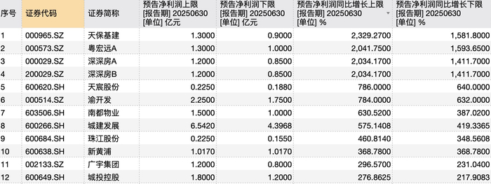 房企中报预亏潮中的“另类”:20家逆势盈利 天保基建、深深房涨幅超10倍