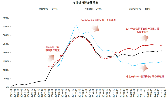 图表4:上市银行拨备覆盖率仍然处于过去十年以来较高水平,风险抵补能力充足
