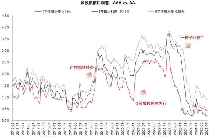 图表3:城投信用利差收窄,反映风险溢价下降