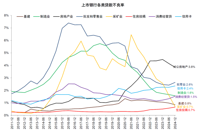 图表2:上市银行资产质量呈现出“零售冒头、地产横盘、公司改善”的特征