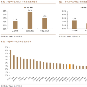 3)重视需求确定性向上的方向。①民爆:新疆、西藏等省份需求高增有望持续,债务省份需求弹性可期,产能约束格局优化长逻辑有望迎来板块价值重估。关注:易普力、江南化工、广东宏大、雪峰科技、高争民爆等。②改性塑料:受益于设备更新和消费品以旧换新的方案的政策,改性塑料行业充分受益,此外,原料PP、PE、PS、ABS等与油价关联度较高,油价下行有望带来成本改善。关注:金发科技、会通股份、国恩股份。③复合肥:龙头集中度持续提高,复合肥长逻辑渗透率提升。关注:新洋丰、云图控股等。
